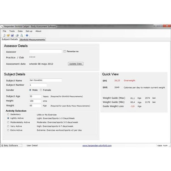 Profesjonalny Fałdomierz Zegarowy BATY Harpenden z Oprogramowaniem do Analizy Składu Ciała