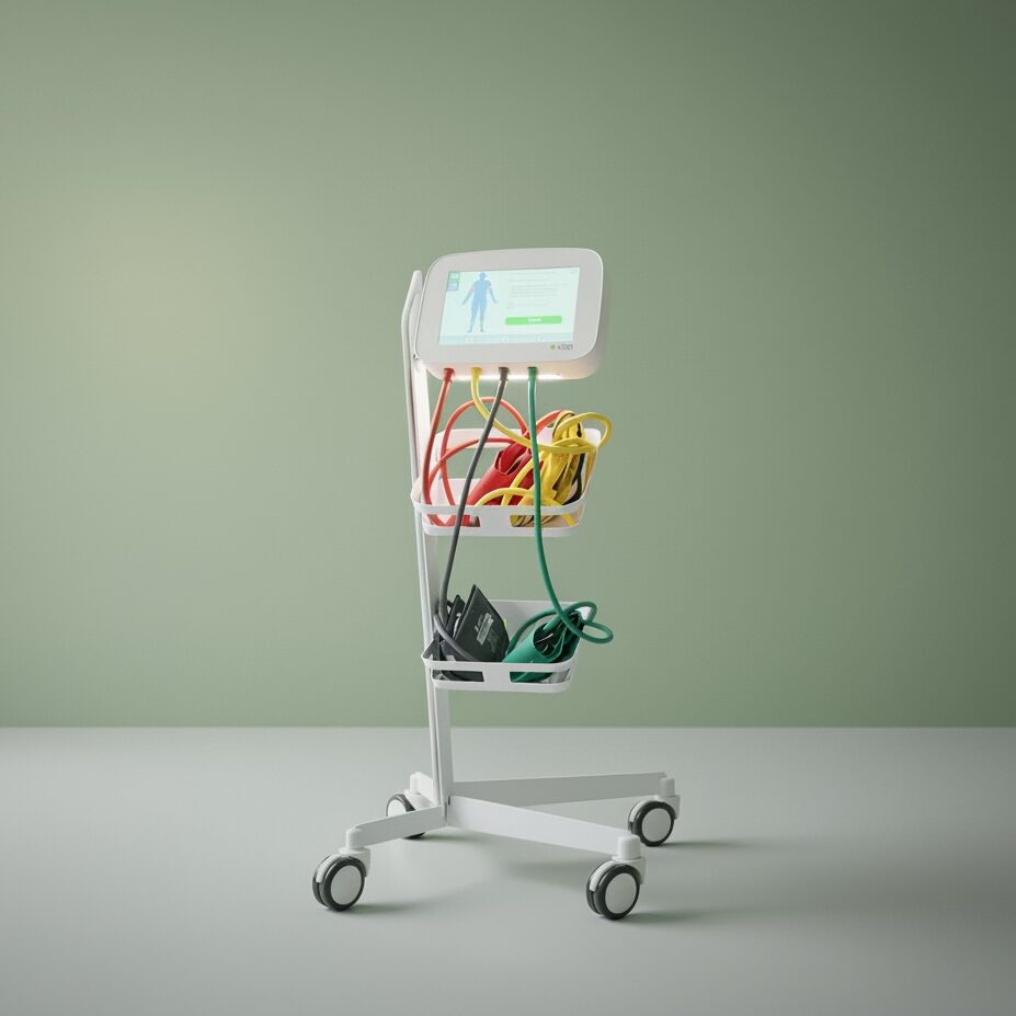 Wózek na aparat MESI ABPI MD został zaprojektowany z myślą o zwiększeniu mobilności urządzenia oraz usprawnieniu codziennej pracy diagnostycznej. Dzięki zamontowanym kółkom, sprzęt można z łatwością przemieszczać pomiędzy stanowiskami czy gabinetami.