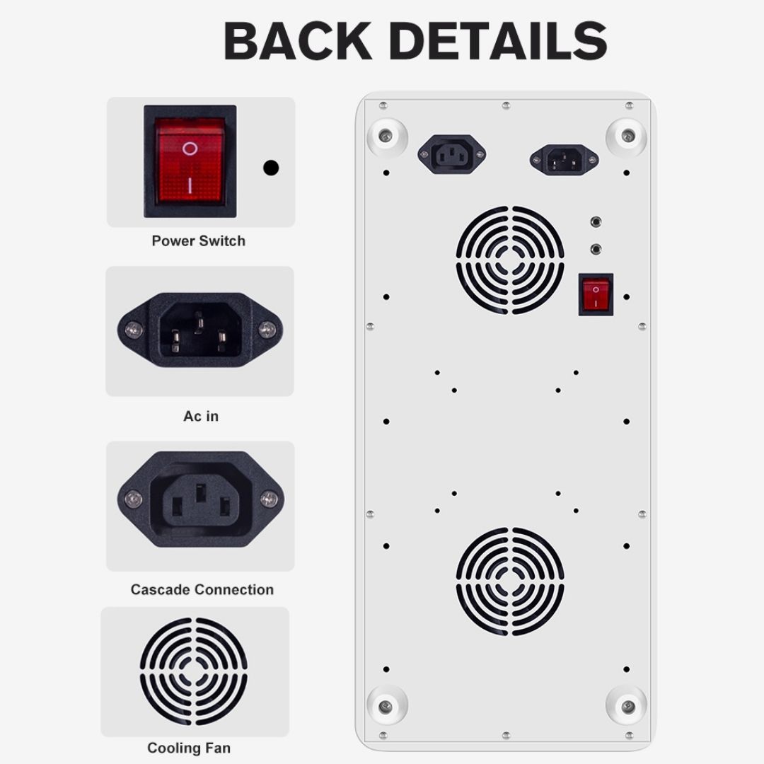 - • Liczba diod LED: 100, każda o mocy ~5 W, co daje dużą moc źródła światła, ale dzięki projektowi optymalizującemu zużycie energii, rzeczywisty pobór mocy panelu to 175 W ± 10%.
