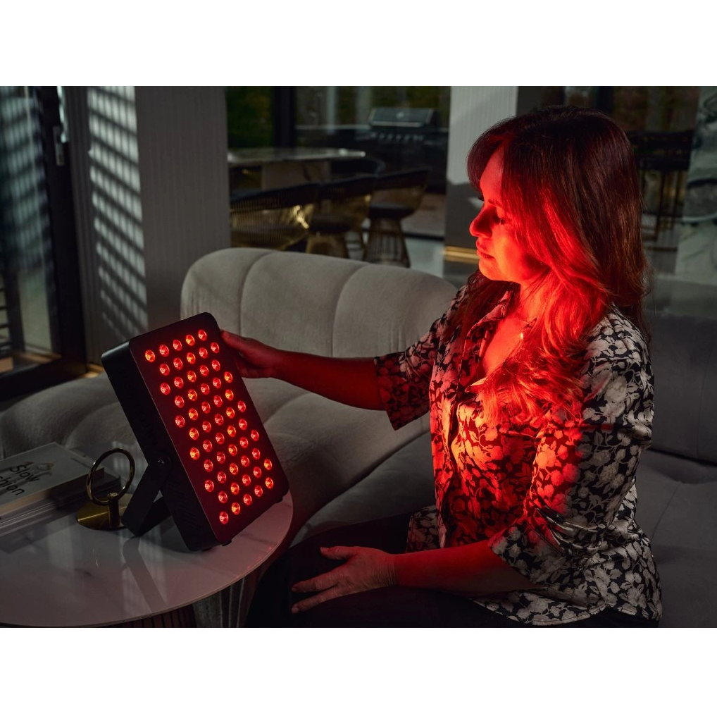 Zastosowanie pionierskiej technologii Multi-Wavelength Dual Chip pozwala na jednoczesną emisję obu spektrów (czerwonego i podczerwonego) z każdej pojedynczej diody, co gwarantuje idealnie równomierne naświetlenie obszaru zabiegowego. Panel eliminuje również problem migotania światła dzięki systemowi Flicker-Free, co jest kluczowe dla ochrony układu nerwowego i zapobiegania bólom głowy. Konstrukcja ta stawia produkt znacznie powyżej standardowych rozwiązań LED dostępnych na rynku, które często pulsują, powodując dyskomfort. Wysoka irradiancja na poziomie 70 mW/cm² przy zachowaniu kąta świecenia 30 stopni sprawia, że światło jest skoncentrowane i dociera dokładnie tam, gdzie jest potrzebne, minimalizując rozproszenie energii.