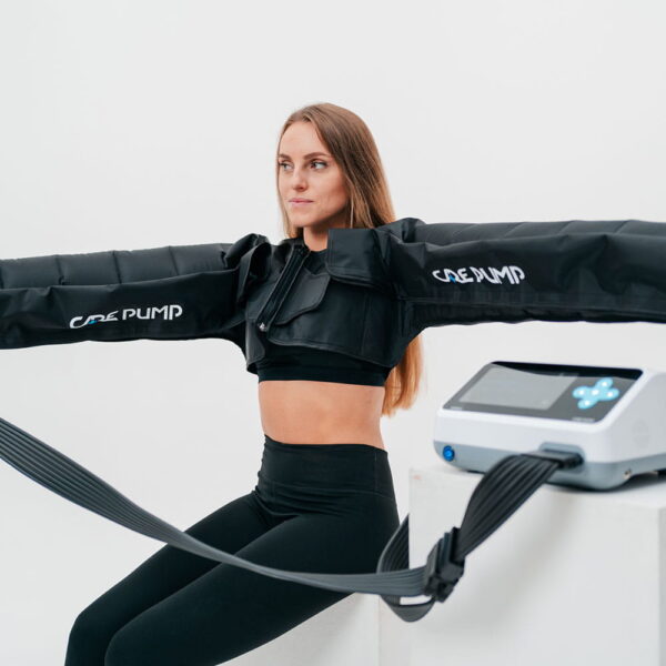 Mankiet przeznaczony do mechanicznego drenażu limfatycznego, obejmującego ręce, barki oraz klatkę piersiową. Znajduje zastosowanie w terapii obrzęków, rehabilitacji pourazowej, regeneracji powysiłkowej, relaksacji, a także jako wsparcie po mastektomii. Dzięki rozszerzonemu zakresowi działania skuteczniej kieruje płyny do węzłów limfatycznych niż standardowe mankiety obejmujące jedynie ręce.