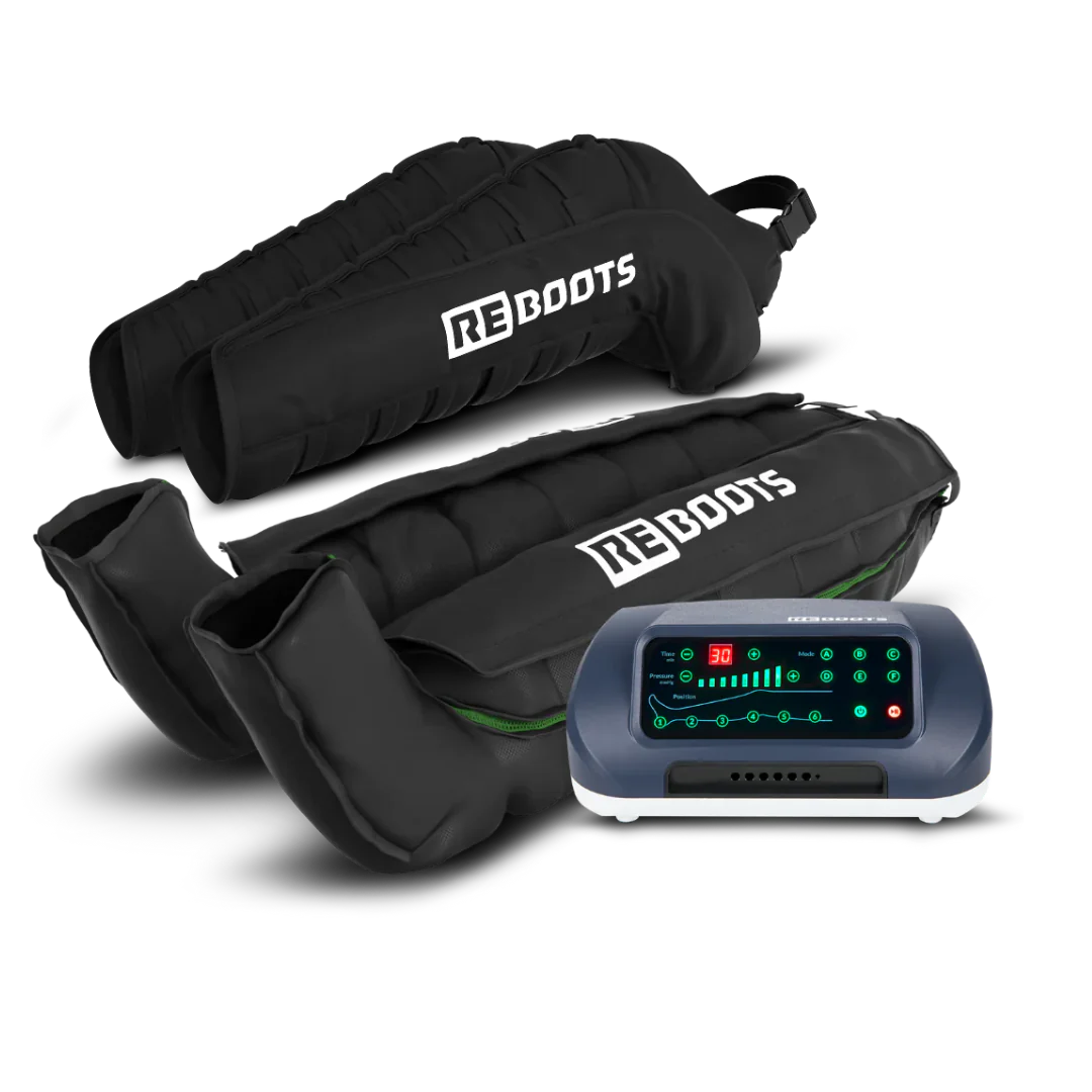 Reboots Kompletny Zestaw oferuje ukierunkowany masaż kompresyjny, który obejmuje nie tylko ramiona, ale także mięśnie klatki piersiowej i barków. 8 zachodzących na siebie komór powietrznych skutecznie masuje od dłoni aż po barki, wspomagając usuwanie produktów przemiany materii, takich jak mleczan, po intensywnych treningach.