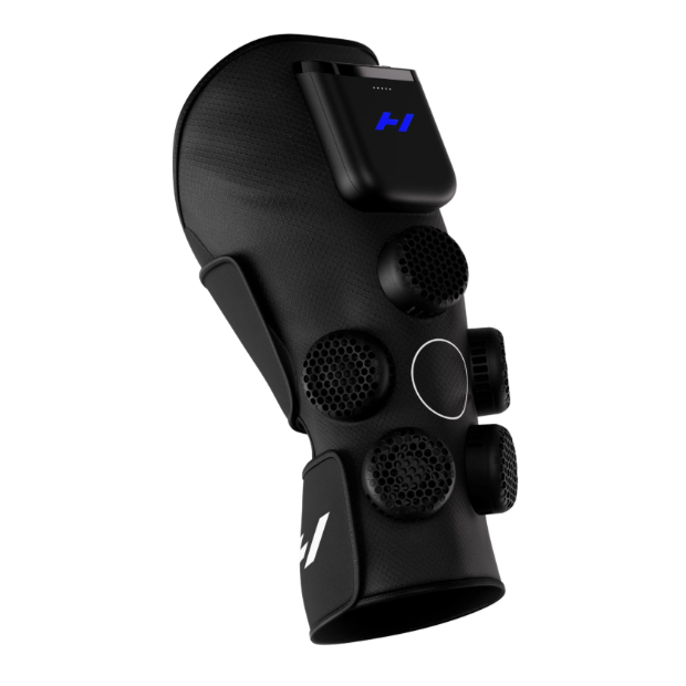 Sterowanie: wyświetlacz OLED + aplikacja Hyperice (Bluetooth)