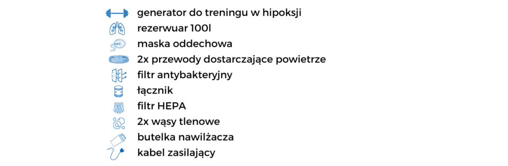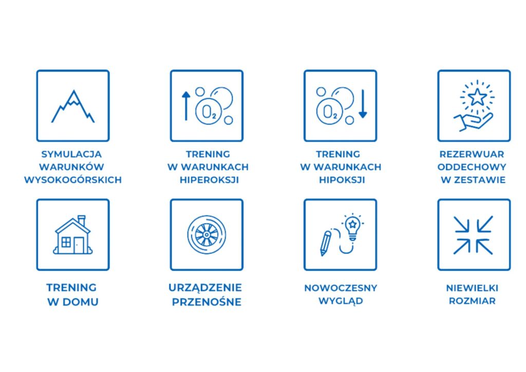 Symulacja hipoksji – W warunkach niskiego stężenia tlenu, stymuluje organizm do zwiększonej produkcji czerwonych krwinek, co poprawia transport tlenu i wytrzymałość. Dzięki treningowi hipoksyjnemu można osiągnąć lepsze wyniki sportowe oraz efektywnie zwiększyć wydolność organizmu.